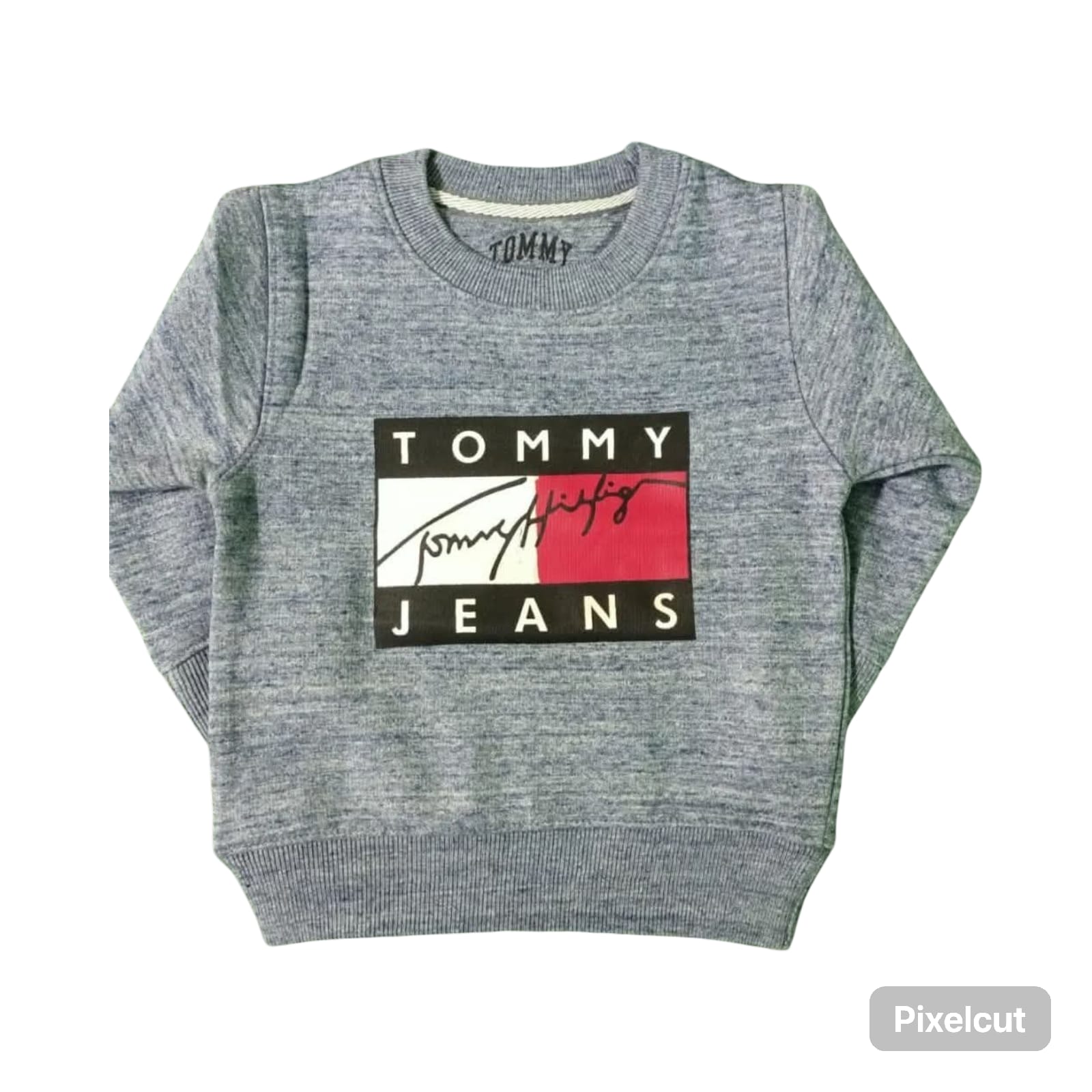 This stylish kids light grey sweatshirt is made from soft and warm fleece fabric, perfect for keeping children cozy during winter. It features the Tommy Hilfiger logo printed on the front, giving it a trendy and classic look. Designed for comfort and easy movement, this sweatshirt is ideal for casual wear, school, and everyday activities.
