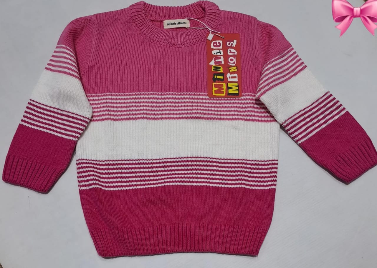 This cozy wool sweater is made from soft and warm wool, perfect for comfortable winter wear. Designed in a lovely pink color with light and dark stripe detailing, it offers a stylish and charming look. The soft texture provides warmth without heaviness, making it ideal for daily wear and winter layering.